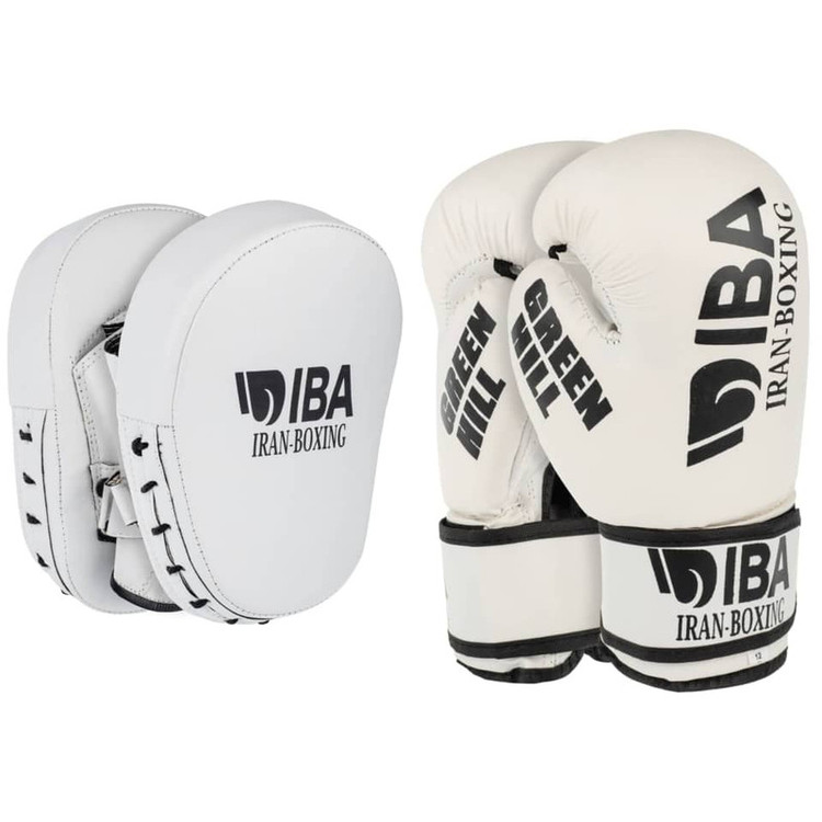ست دستکش و میت آیبا از بهترین ست های بوکس است که برای انواع ورزشهای رزمی مورد استفاده قرار میگیرد. این محصول از چرم مصنوعی با کیفیت تهیه شده به همین دلیل ضربات وارد شده را به خوبی جذب کرده و از ورزشکار حمایت میکند.