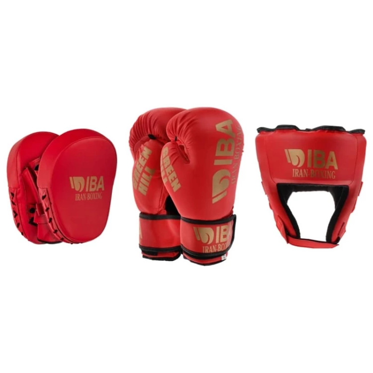 ست دستکش بوکس ، کلاه و میت آیبا از بهترین ست های بوکس است که برای انواع ورزشهای رزمی مورد استفاده قرار میگیرد. این محصول از چرم مصنوعی با کیفیت تهیه شده به همین دلیل ضربات وارد شده را به خوبی جذب کرده و از ورزشکار حمایت میکند.