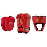 ست دستکش ، کلاه و میت آیبا از بهترین ست های بوکس است که برای انواع ورزشهای رزمی مورد استفاده قرار میگیرد. این محصول از چرم مصنوعی با کیفیت تهیه شده به همین دلیل ضربات وارد شده را به خوبی جذب کرده و از ورزشکار حمایت میکند.